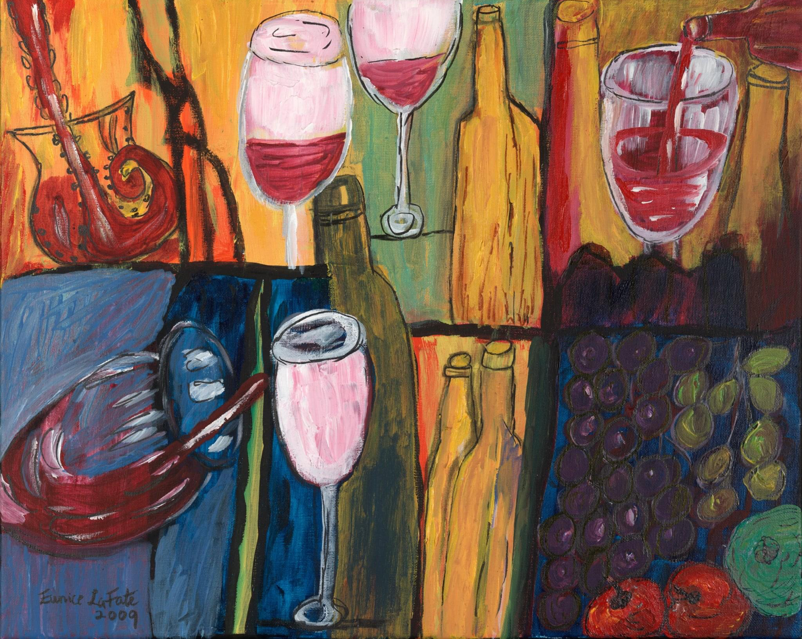 Painting of wine bottles
